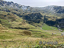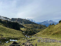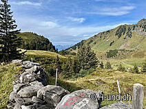 The Murmeliweg and the Sonnenweg combined make a beautiful circular hike with a fantastic view of the north face of the Eiger. The hike starts in Käserstatt and follows a wide forest path over to Mägisalp. The path already leads over the first cow pastures, but the cows are used to lots of people and dogs and take us quite calmly. We soon reach the Mägisalp, where we have our first refreshment stop before a very steep but short ascent. The ascent then becomes a little gentler and we walk on a narrow single trail over cow pastures, through streams and are accompanied by fantastic views of Lake Brienz and the north face of the Eiger. We also pass an alpine hut where you can help yourself to drinks. The farm is guarded by a Bernese mountain dog, but it remained very calm and simply kept an eye on us. The cows were also very relaxed along the way and showed little interest in us even when we walked 2 meters past them. When we were there at the end of September, there were no suckler cows on the alp, so we can't say whether they are just as relaxed.