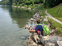 Nous avons commencé à Rheinau. À la piscine intérieure et extérieure Aquarina, nous pouvions nous garer gratuitement. De là, nous avons continué vers le Rhin en suivant les panneaux "Via Rhenana". Sur d'étroits chemins naturels le long de l'eau, entourés par la nature et de petits ruisseaux, nous avons été étonnés encore et encore par la lumière différente du soleil et du Rhin. Avec deux chiens et la circulation en sens inverse, les chemins étaient très étroits. Il montait et descendait régulièrement, le chemin faisait des courbes que l'on ne s'ennuyait jamais. Le Rhin invite sans cesse à la baignade, qui est également prévue les jours de grande chaleur pour se rafraîchir, tandis que les arbres donnent de l'ombre. Directement sur le chemin se trouve le bain de plein air et du Rhin Bachdelle en Dachsen. Il comprend des piscines, une zone de baignade sur le Rhin et une prairie pour chiens bordée par un ruisseau. Le kiosque propose un choix exceptionnellement large de plats et de boissons, qui vous invitent à vous attarder. Au bord de la rivière, le trajet se poursuit maintenant en direction de Schaffhouse. Plus vous vous approchez des chutes du Rhin, plus il y a de touristes sur les sentiers, il est conseillé de tenir vos chiens en laisse courte ici. Aux impressionnantes chutes du Rhin, il est toujours possible de prendre des photos. Selon le nombre de personnes présentes, vous devriez prévoir un peu de temps ici. Une pelouse de bronzage au-dessus des chutes du Rhin offre un espace de détente. Des visites en bateau sont également proposées ici. Nous nous sommes ensuite rendus dans la belle vieille ville de Schaffhouse, dont le Munot, le symbole, était visible de loin, à travers les magnifiques ruelles de la gare. Nous avons pris le train et le bus pendant environ 35 minutes pour retourner à Rheinau et à l'Aquarina. Et c'est ainsi qu'une journée impressionnante s'est rapidement terminée.